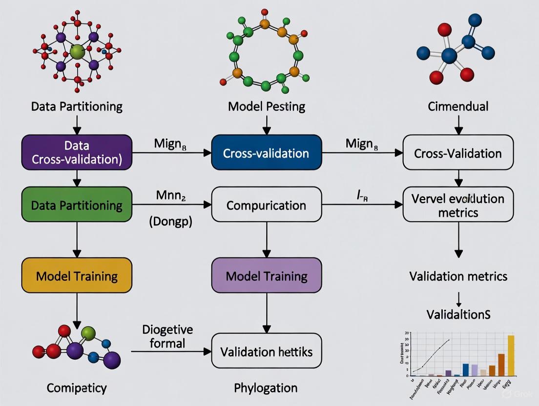 Phylogenetically structured cross-validation represents a significant advancement over standard validation approaches by explicitly accounting for evolutionary relationships during the validation process. This method involves strategically partitioning data based on phylogenetic structure rather than random assignment, ensuring that closely related species do not appear in both training and test sets [4]. One effective implementation is "phylogenetically blocked cross-validation," where the phylogenetic tree is divided into clades at specified time points, with each clade serving as a test set while models are trained on the remaining clades [4].