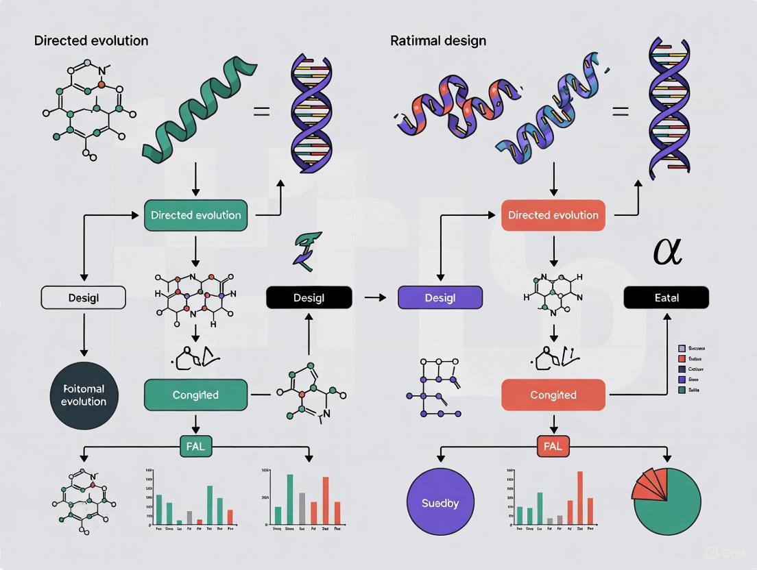 In the field of protein engineering, directed evolution and rational design represent two fundamentally distinct approaches for creating and optimizing biological molecules. For decades, these methodologies have been viewed as competing strategies, yet technological advancements are increasingly blurring the lines between them. This guide provides a comprehensive, data-driven comparison of these techniques, examining their respective strengths, limitations, and ideal applications within modern research and drug development contexts. Framed within broader research on comparative success rates, this analysis synthesizes current methodologies, experimental protocols, and performance metrics to inform strategic decision-making for scientists and drug development professionals.