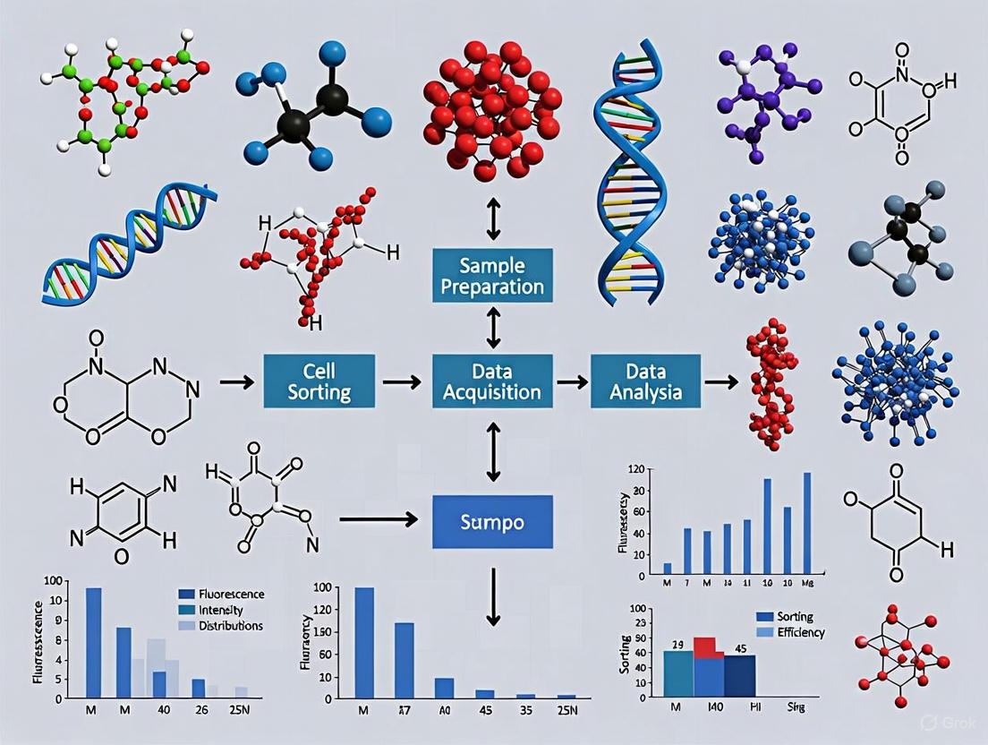 Framed within the context of FACS-based high-throughput screening, this methodology transforms the raw, quantitative data generated from the fluid stream into actionable biological insights. The integration of high-speed physical sorting based on multiparametric data allows researchers not only to characterize but also to isolate specific cell populations for downstream functional studies, proteomics, and transcriptomics, thereby accelerating the drug development pipeline [3] [4].